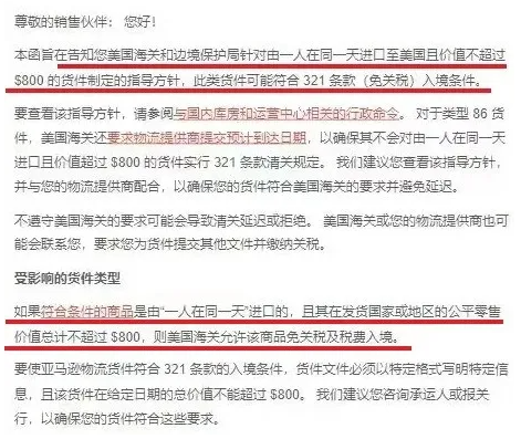 實際上,這一個通知主要是針對FBM自發(fā)貨的客戶,而且還是單人單日發(fā)貨總計貨值不超800美金的客戶。換一句更加好懂的話說就是,那便是:“一個賣家一天只能免稅貨值800美元,超出800美元,超出的產(chǎn)品進口的時候就要交關稅。”